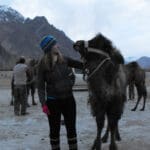 Well, after acclimatizing for the first two days and some convincing of a travel agency, the four of us were on our way to Nubra Valley. In order to travel away from Leh and into most areas, one must apply and receive a permit due to the close proximity of China and Tibet. Our trip to Nubra lasted for over 6 hours and was quite eventful for a day full of driving. First off, neither Radhika nor Nibha had ever seen snow before, so while driving up the rocky mountains of the Himalayas we had multiple “ooos” and “ahhs” along with a few pit stops for picture opts. Somewhere around 17,000 feet, we all started to feel the lack of oxygen with a headache and my hands even turned blue at the tips… That was not a fun experience when I thought my hands wouldn’t possibly ever feel the warmth of the Rajasthan desert again. But, alas, that was a false fear, as we all know where I am now.