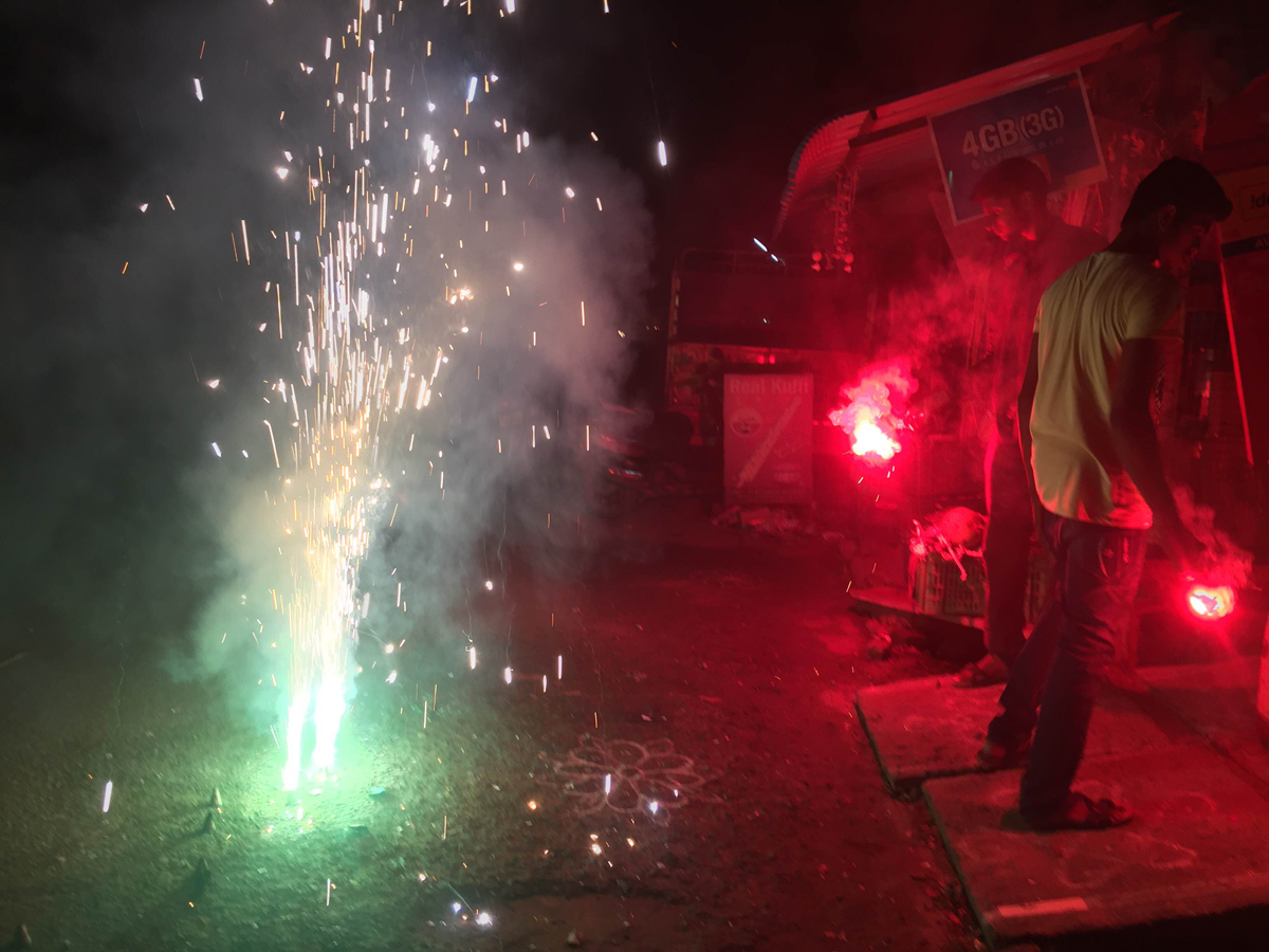 Firecrackers are not allowed in Auroville. They are not environmentally friendly. They leave a lot of litter in the streets and sewers. The noise pollution scares away wildlife. The poor air quality peaks during Diwali weekend in every city in India as the crackers release unnatural chemicals. When you’re actually bursting firecrackers, ashes will burn your skin when you’re too close, you have temporary blindspots in your vision from staring at colorful fire at night, and you suffer from temporary hearing loss when the little bombs go off with a surprising amount of force.